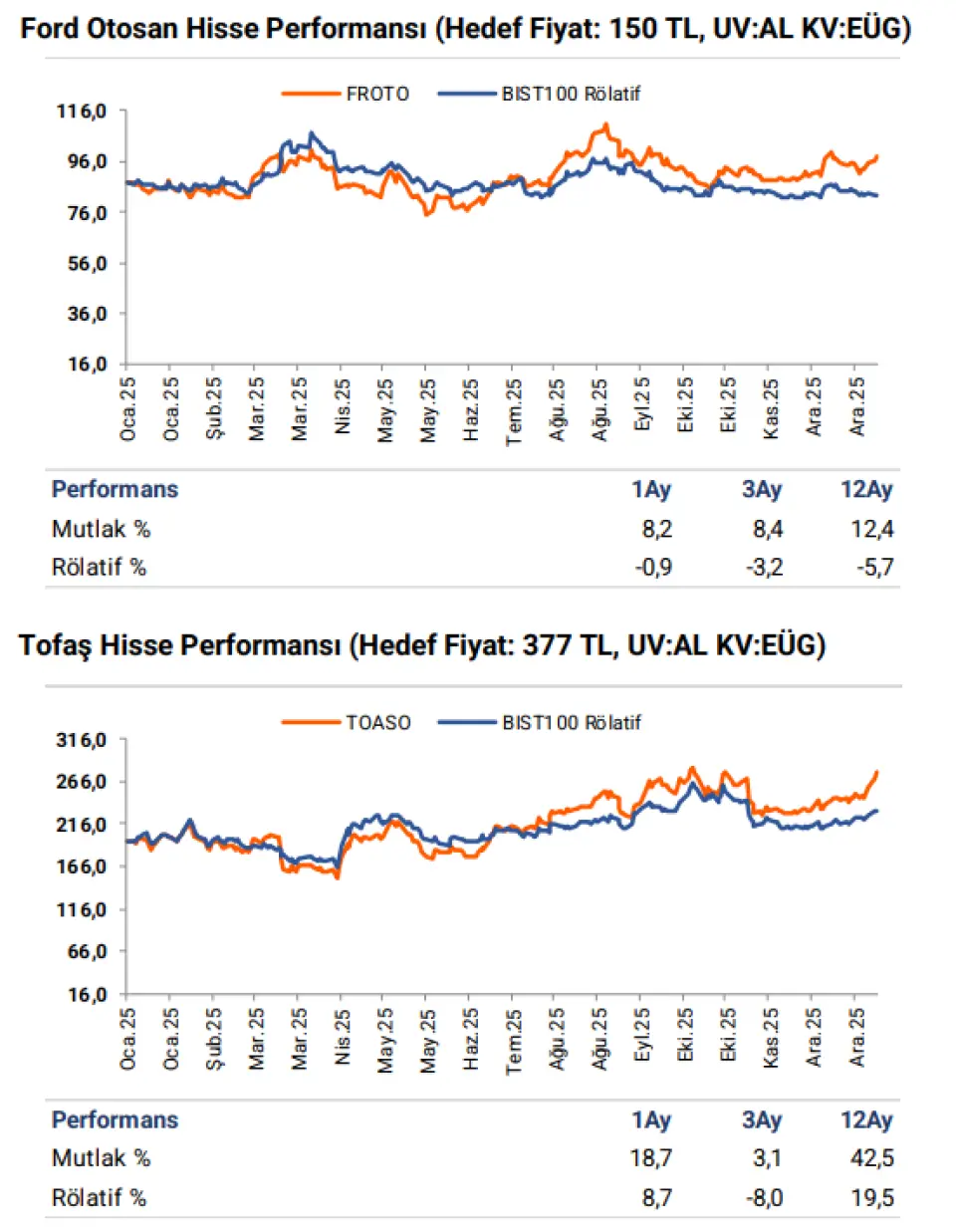 Vakıf Yatırım FROTO için 150 TL hedef fiyat ile AL tavsiyesi verdi. Kurum TOASO için ise 377 TL hedef fiyat tespit etti.