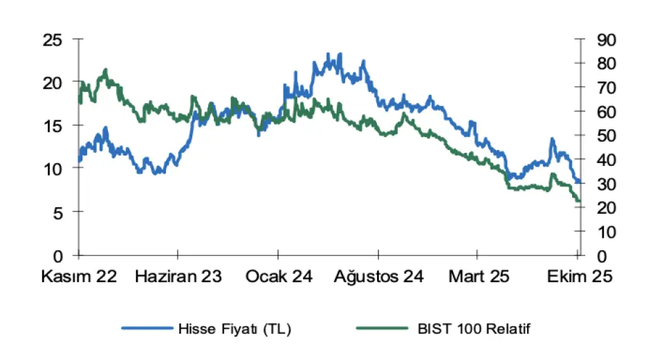 3Ç25 finansalları sonrası, 12 aylık hedef fiyatımızı pay başına 17,00 TL seviyesinden 15,00 TL seviyesine revize ediyoruz. Hedef fiyatımız %73,4 yükseliş potansiyeli taşırken, AL tavsiyemizi koruyoruz."