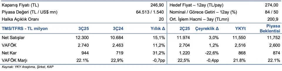 - "TAB'ın 2025 3. çeyrek sonuçlarını, tüketici trendlerini yakalayan şirketin etkili satış stratejisi ve bunu yansıtan güçlü fiş büyümesi sayesinde olumlu olarak değerlendiriyoruz. Ancak, sonuçlar beklentilerle genel olarak uyumlu olduğundan piyasa tepkisi daha sınırlı olabilir."