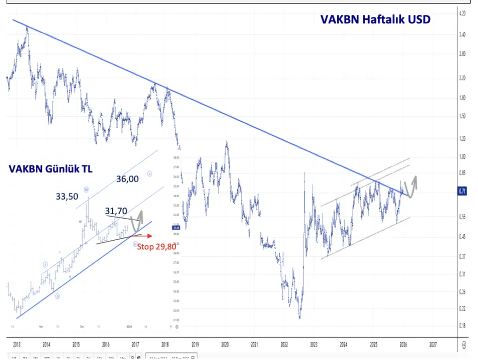 VAKBN hissesi 2026 yılının ilk işlem günü olan 2 Ocak Cuma gününe 29,68 TL'den başlangıç yaptı.