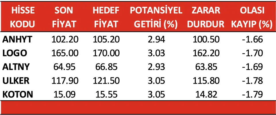 Yeni Hisse Önerileri: ANHYT, LOGO, ALTNY, ULKER ve KOTON!
