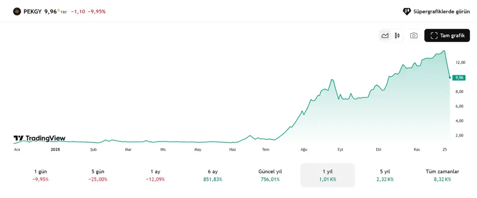 Peker GYO (PEKGY) bu yıl yatırımcılarına en çok kayıp yaşatan hisseler arasında yer aldı. Son 1 yıllık performansa bakıldığında yaklaşık %85’e varan düşüş görülüyo ve bu süreçte birçok yatırımcının alım gücü ciddi şekilde zayıfladı. Hisse uzun süre dip seviyelerde kaldı, çoğu yatırımcı için umutların tükendiği bi dönem yaşandı.