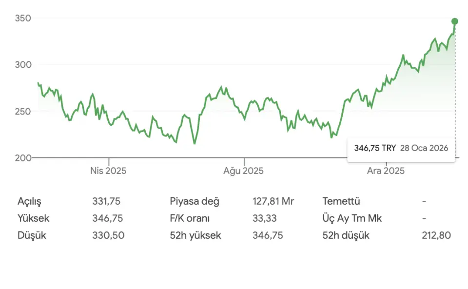 "Son altı ayda TAV hisseleri %28 değer kazanmış ve BIST100 endeksine göre %6 daha iyi performans göstermiştir. 2026 tahminlerimize göre, hisseler hâlihazırda 21,8x F/K ve 5,5x FD/FAVÖK çarpanlarıyla işlem görmektedir. 12 aylık hedef fiyatımız olan 400 TL seviyesinde ise hisseler 26,7x F/K ve 6,3x FD/FAVÖK çarpanlarına karşılık gelmektedir."
