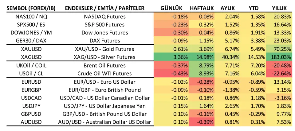 +0.06%, FTSE -0.03% ile kapandı. TSİ 09:20 / ABD vadeli endeksleri negatif ve Avrupa vadeli endeksleri ağırlıklı negatif işlem görüyor.