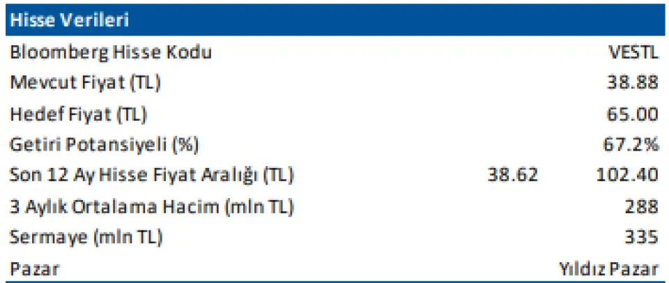 VESBE / TUT – Hedef fiyat: 20,00 (12-ay) VESTL / TUT – Hedef fiyat: 65,00 (12-ay)