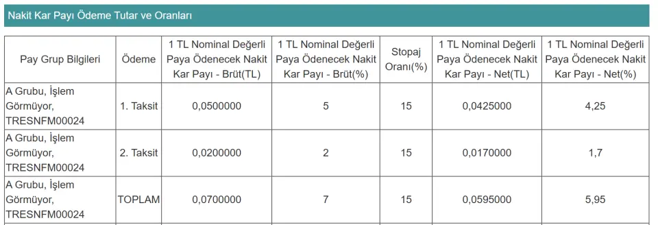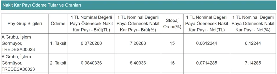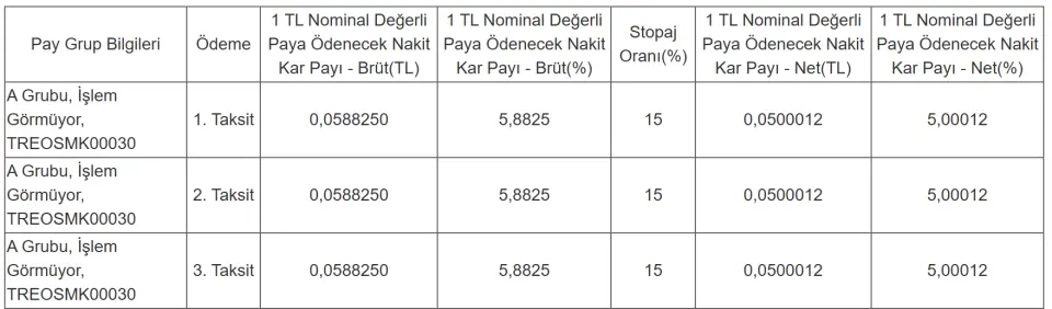 27-31 Ekim haftasında tam 6 şirket kar payı ödemesi gerçekleştirecek. Şirketlerin hak kullanım tarihi aşağıda yer almaktadır. Toplamda pay başına 1,2981742 TL ödeme yapılacak.